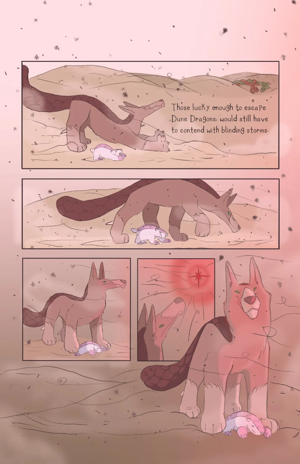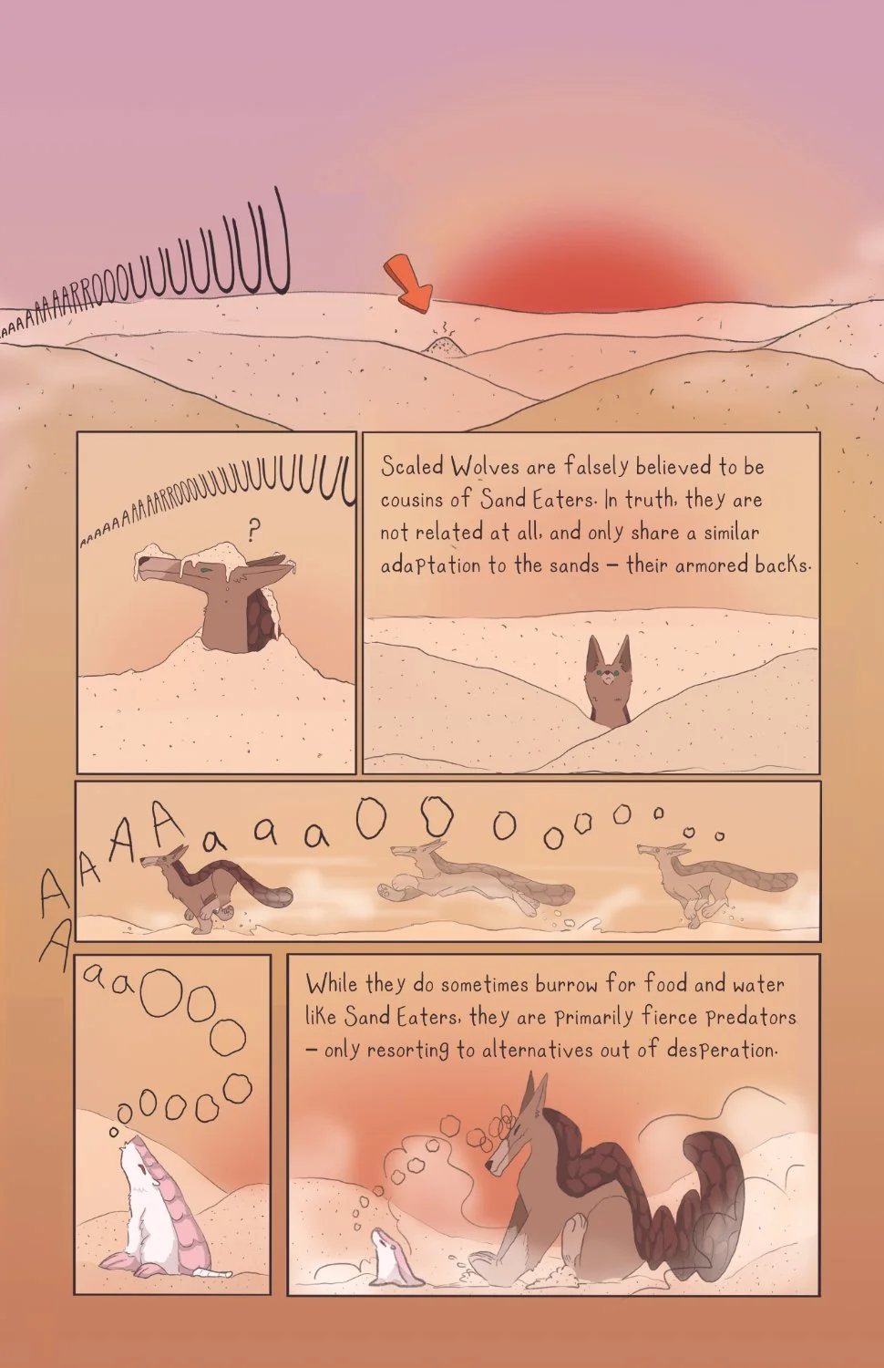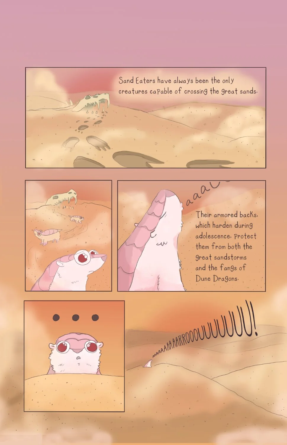 Kayla Red Eyes, the First Explorer, describes the world of Sand as a desolate place full of dangerous creatures like Dune Dragons and Sand Wolves. In such an unforgiving place, can a newborn Sand Eater find any safety - any sanctuary?