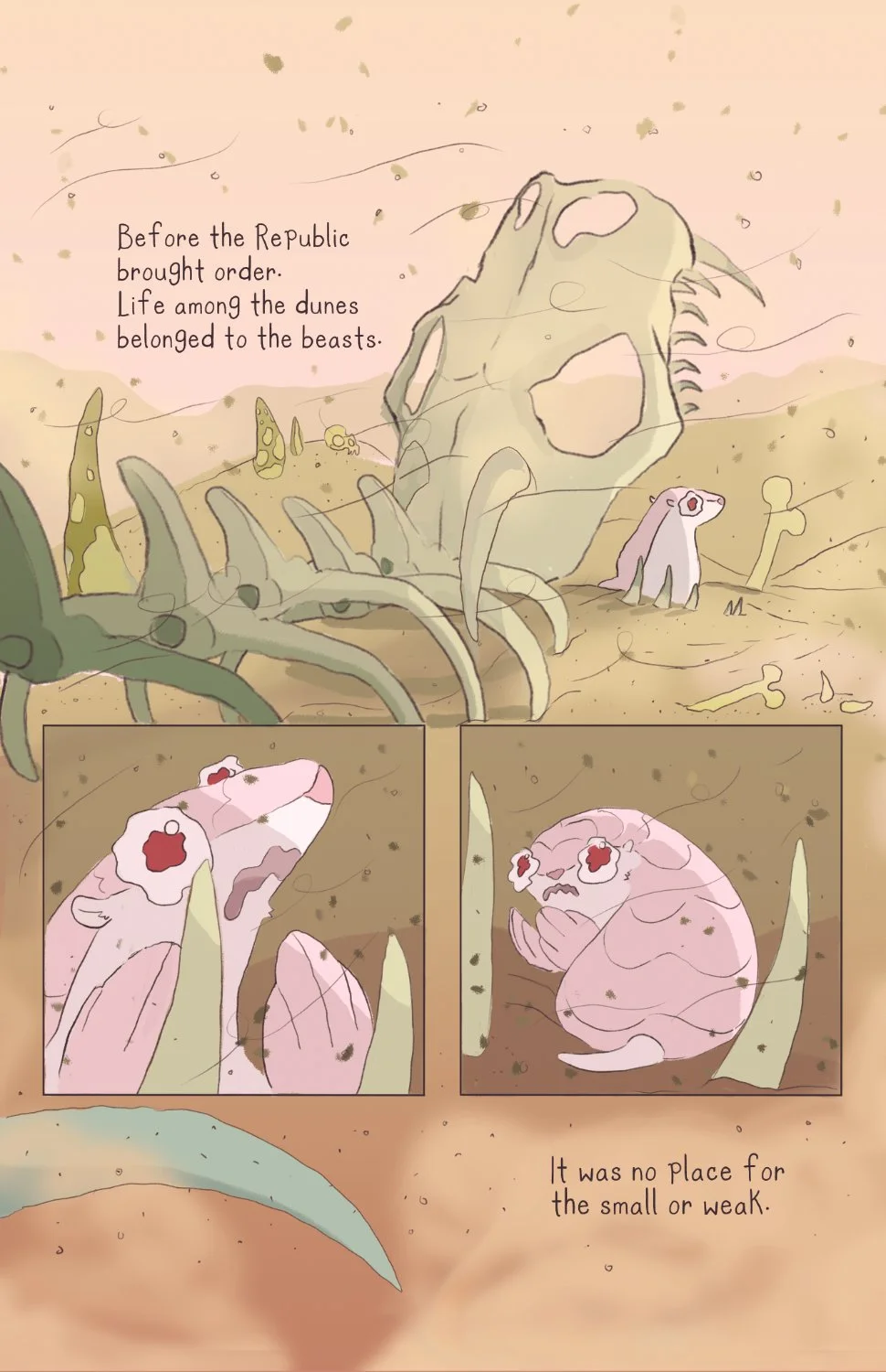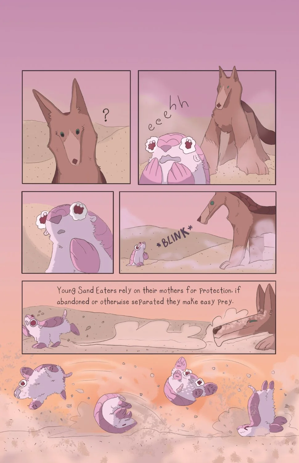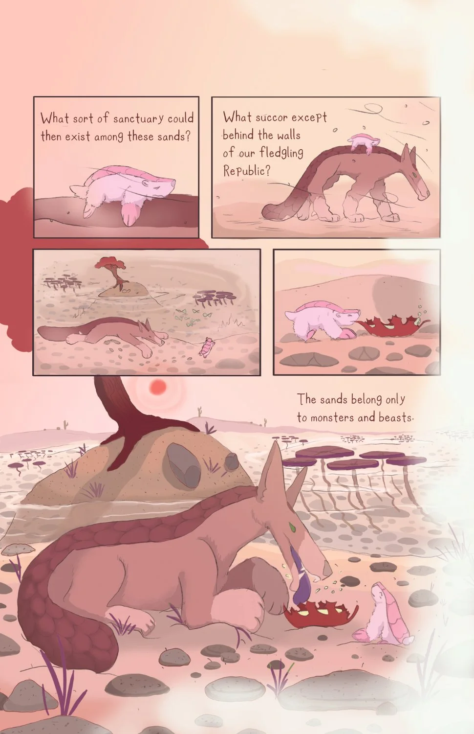 Kayla Red Eyes, the First Explorer, describes the world of Sand as a desolate place full of dangerous creatures like Dune Dragons and Sand Wolves. In such an unforgiving place, can a newborn Sand Eater find any safety - any sanctuary?